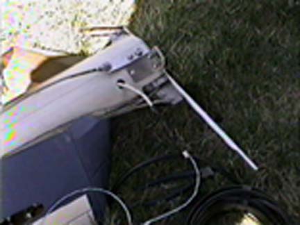 To eliminate the wires from banging inside the mast, I first had to cut-off the coax connector at the top of the mast and lash some pull string to the coax: